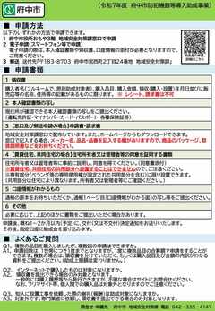 申請は1世帯1回までとなりますので、申請後に購入若しくは設置工事をした経費の追加申請はできません。