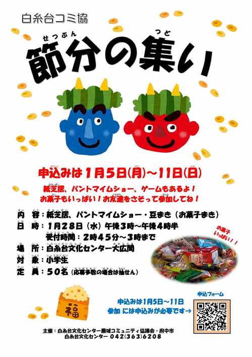 【1月5日~11日申込み受付】節分の集い(白糸台文化センター)