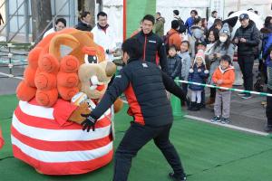 今回ご協力いただいた、東芝ブレイブルーパスと帝京大学ラグビー部の選手の皆さん、市民ボランティアの皆さん、ラガマルくんとふちゅこま、寒い中1日どうもありがとうございました。