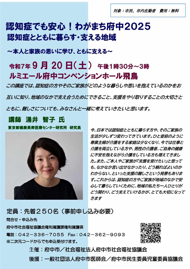 【講演会】認知症でも安心!わがまち府中2025 認知症とともに暮らす・支える地域