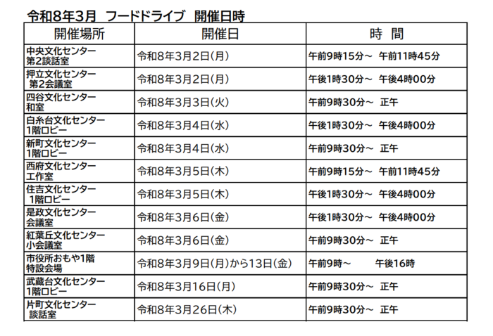 注記:食品ロス削減のために実施するものですので、フードドライブに持ってくることを目的として購入したものは対象外とします。