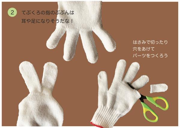 手袋や軍手を使って、動物のぬいぐるみをつくる。