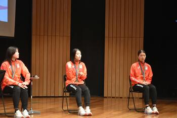 当日は、デフレスリング日本代表の三浦桂吾選手・船川真央選手、デフバドミントン日本代表の矢ケ部紋可選手・鎌田真衣選手、そしてデフバレーボール女子日本代表の平岡早百合選手・佐藤愛莉選手・長谷山優美選手をお招きしました。