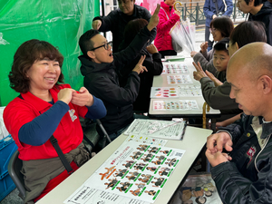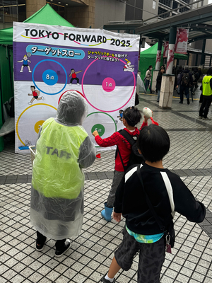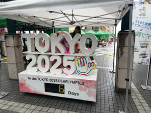 令和7年11月9日(日曜日)に府中駅南口ペデストリアンデッキにて直前祭を実施し、デフ陸上協会によるスタートランプ体験、東京都によるカウントダウンモニュメントの展示・PRブースの出展、東京法務局によるVR体験、府中聴覚障害障害者協会による手話体験を行いました。