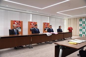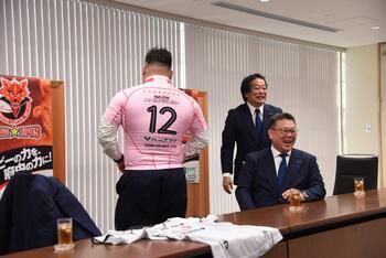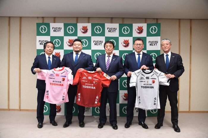 東芝ブレイブルーパス東京がシーズン開幕挨拶で市長を表敬訪問