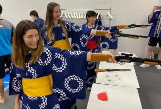 キャンプ中の気分転換にと、日本の夏祭りをテーマに、射的やボールすくいなどを体験していただきました。