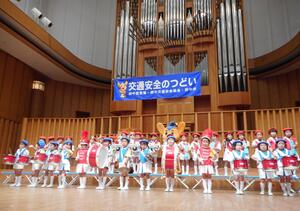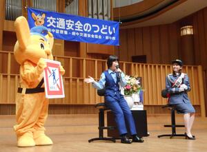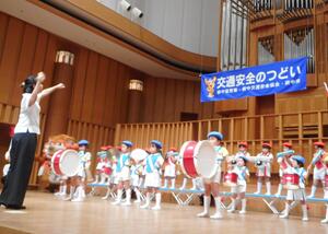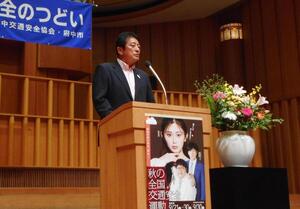 9月14日(日曜日)に、秋の全国交通安全運動に先がけ、武蔵国府中大使の安めぐみさんを一日警察署長に迎え、交通安全のつどいが開催されました。当日は式典に加えて高安寺保育園鼓笛隊の演奏や交通安全トークショーが行われました。多くの方に参加いただき、盛大に行われました。