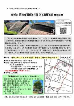 「東京文化財ウィーク2025」(10~11月)開催に伴い、資料の展示とともに、普段は入れない掩体壕の内部を特別公開します。ぜひご来場ください。