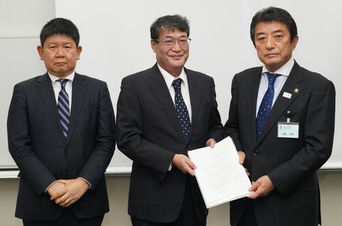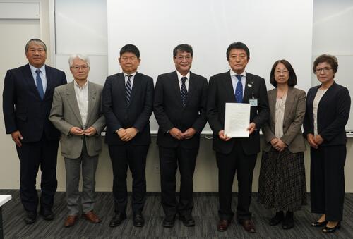 令和7年10月27日(火曜日)、府中市下水道事業経営戦略等検討協議会の長岡会長から、府中市下水道事業経営戦略等についての最終答申書が高野市長に手渡されました。