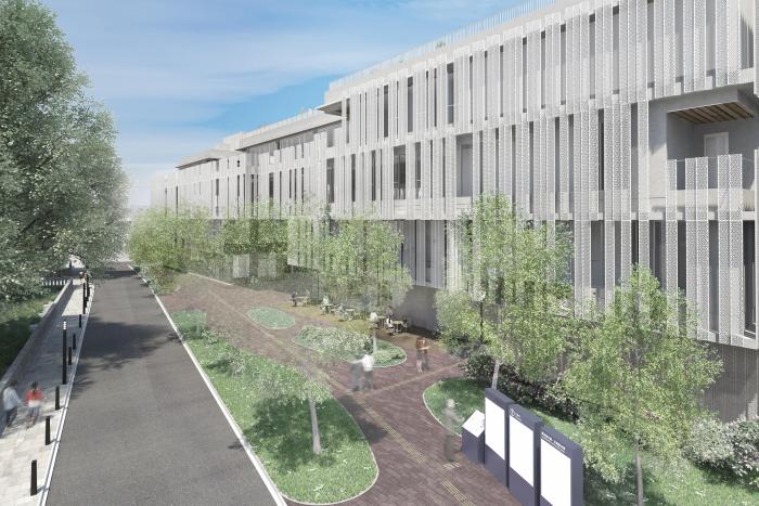 平成27年9月より、公募型プロポーザル方式により選定した「千葉学建築計画事務所・久米設計 設計共同体」と新庁舎建設の設計作業に取り組んできましたが、基本設計の完了を経て、平成30年3月に実施設計が完了しました。