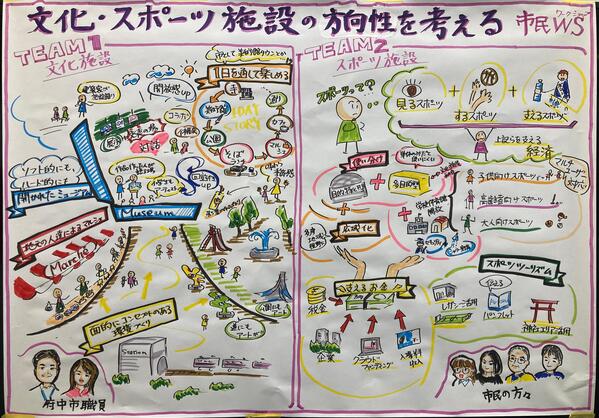 この度、広くご意見やアイデアを聞かせていただくことを目的とし、「文化・スポーツ施設の将来の方向性を考える」をテーマに、以下のとおりワークショップを開催しました。
