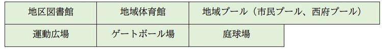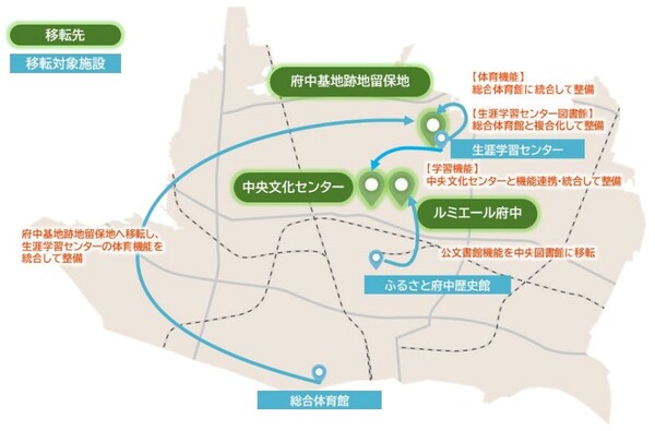- 府中基地跡地留保地に移転し、生涯学習センターの体育機能を統合して整備する。