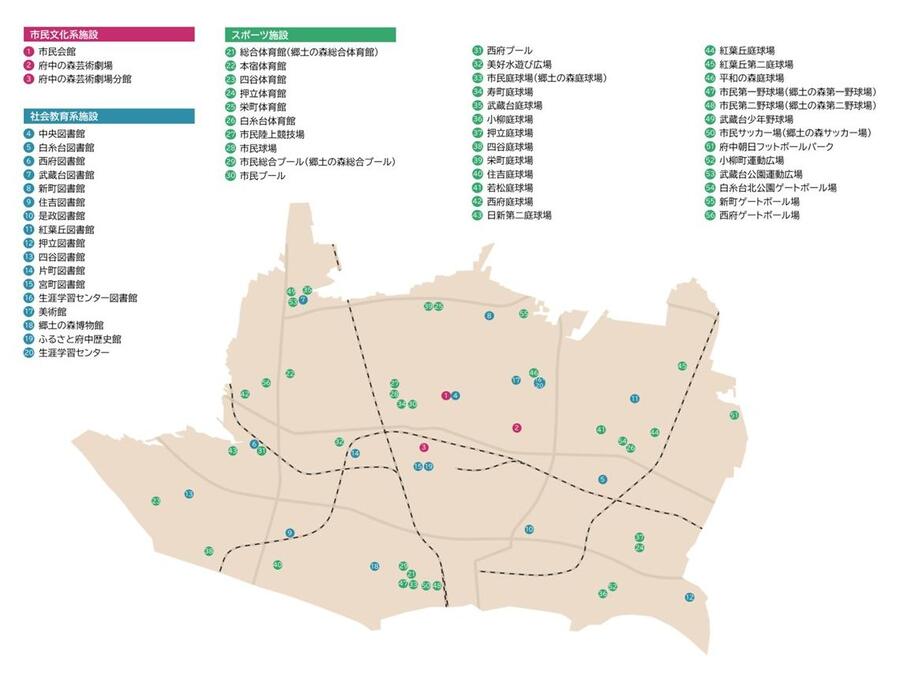 市では、文化・スポーツ施設の配置や機能などの適正化を図ることを目的に、令和6年度から令和34年度までの29 年間を計画期間とする「府中市文化・スポーツ施設配置等適正化計画」を策定しました。この計画案の作成にあたり、市政世論調査のほか、ワークショップ及びオープンハウス、関係団体及び附属機関等との対話等を通じて、延べ約1,800名の方からご意見をいただきました。