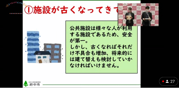 公共施設マネジメントの取組をもっとたくさんの市民の皆様に知っていただき、取組をさらに推進していくために、オンライン上で実施されたライトニングトークで取組内容をご紹介したほか、会場にパネルを展示し、市民の皆様にご覧いただきながら対話させていただきました。