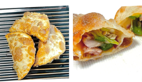ピーマンの種入り餃子皮カルツォーネ(中学2年生の作品)