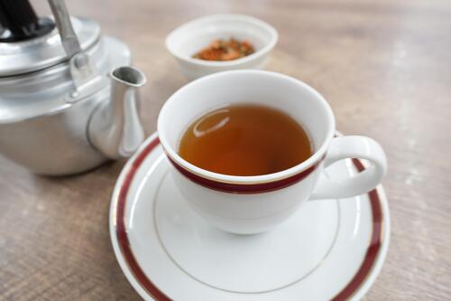 - 急須に(3)とお湯を入れ、しばらく待ってからカップにそそぐ。