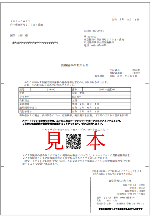 注記:令和6年12月2日以降に国民健康保険に加入された方や世帯状況の変更があった方で既に発行している方へも送付しております。