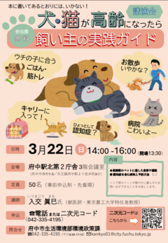 講演会「犬・猫が高齢になったら ~飼い主の実践ガイド」はご好評につき定員に達しましたので、募集を締め切らせていただきました。