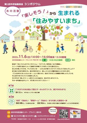 その一環として、11月の「市民協働推進月間」に、協働についてもっと身近に感じていただくために市民協働推進シンポジウムを開催します。