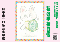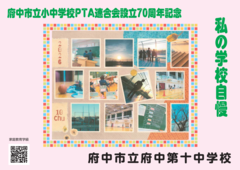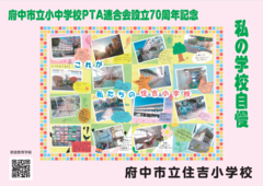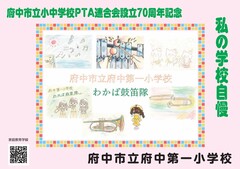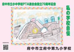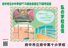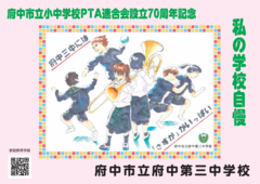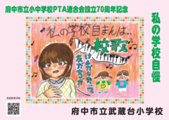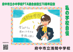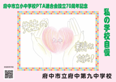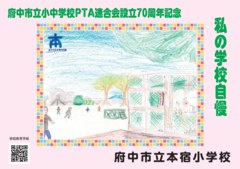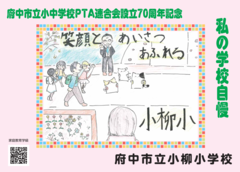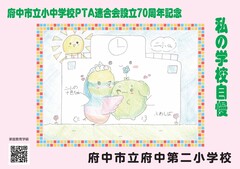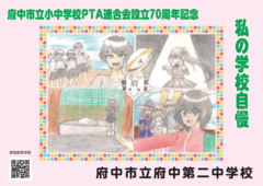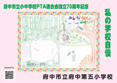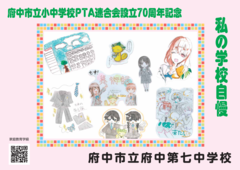 府中市立小中学校PTA連合会設立70周年記念事業として、2月14日(土曜日)から期間限定で、市立小・中学校33校の児童・生徒の作品が「ちゅうバス」内に掲示されています。
