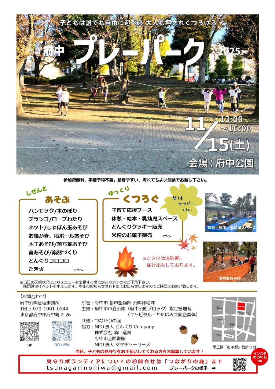 注記:この事業は、府中公園を含む市立公園68か所の指定管理者である「キャピタル・かたばみ共同企業体」が主催しています。